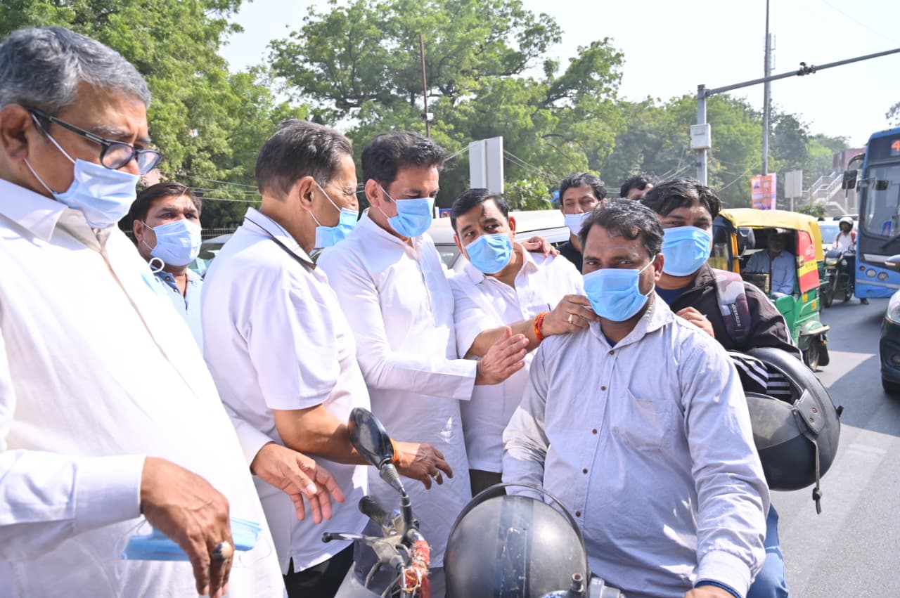 दिल्ली प्रदेश कांग्रेस अध्यक्ष देवेन्द्र यादव के नेतृत्व में आईटीओ चौक पर लोगों को मास्क वितरण करके प्रदूषण के प्रति जागरुकता अभियान चलाया।