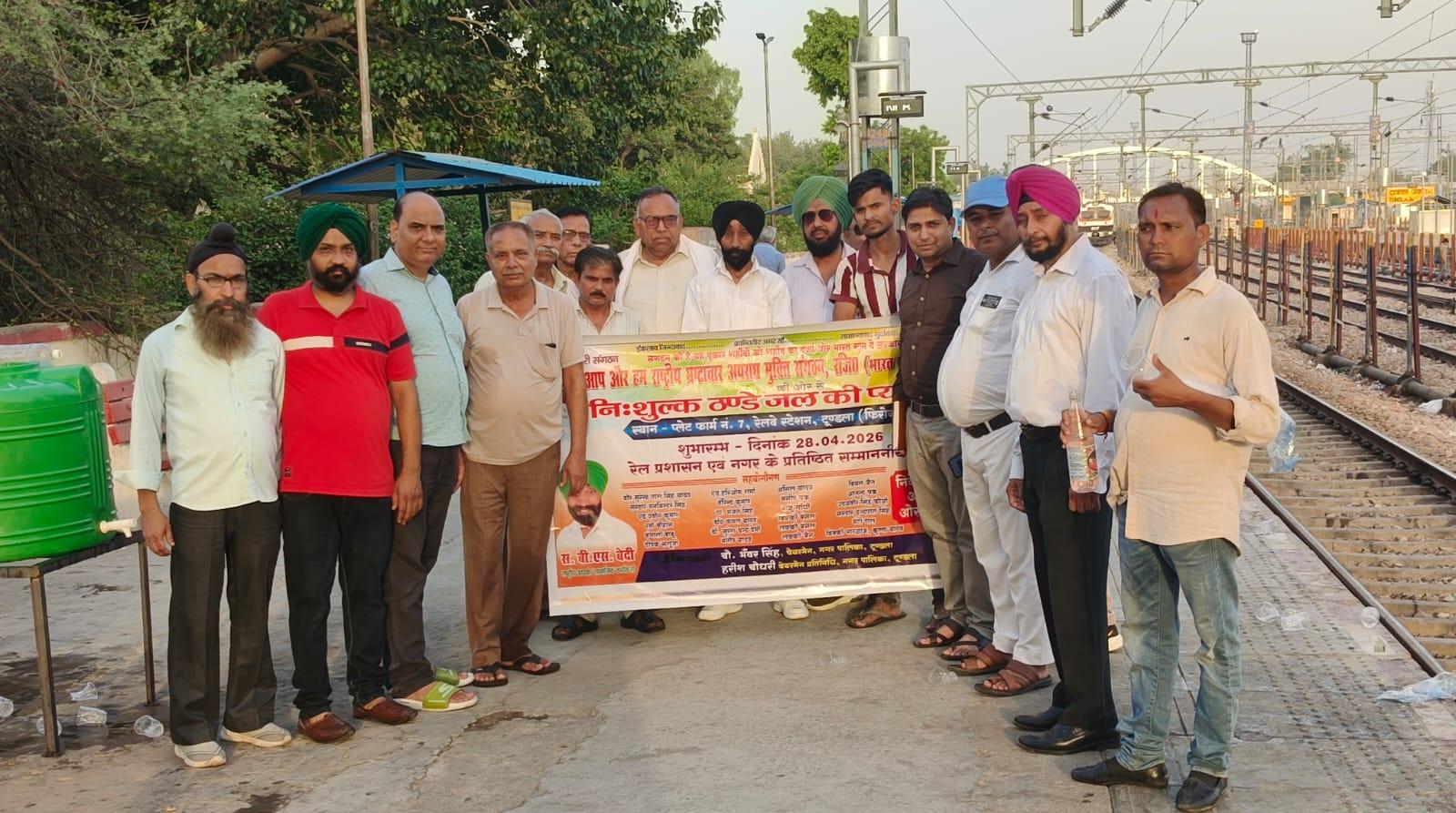 में , श्री बेदी ने बताया गर्मी बहुत हे स्टेशन पर पानी की समस्या बनी थी आने जाने वाले यात्रियों को गर्मी में पानी नहीं मिल पा रहा , है संस्था ने यात्रियों के लिए दो टंकी की व्यवस्था की है साथ ही संस्था ने श्रीमान सी टी एम महोदय से यह मांग रखी हे पानी की देख रेख के लिए रेलवे द्वारा एक कर्मचारी की ड्यूटी लगाई जाए ताकि टंकियों में पानी पर्याप्त भरा रहे संस्था के कुछ सदस्य भी शाम के जाकर पानी की सेवा देंगे ,
