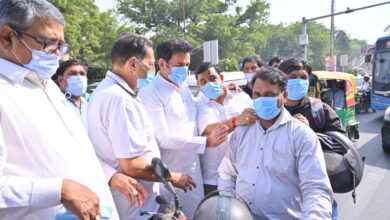 दिल्ली प्रदेश कांग्रेस अध्यक्ष देवेन्द्र यादव के नेतृत्व में आईटीओ चौक पर लोगों को मास्क वितरण करके प्रदूषण के प्रति जागरुकता अभियान चलाया।